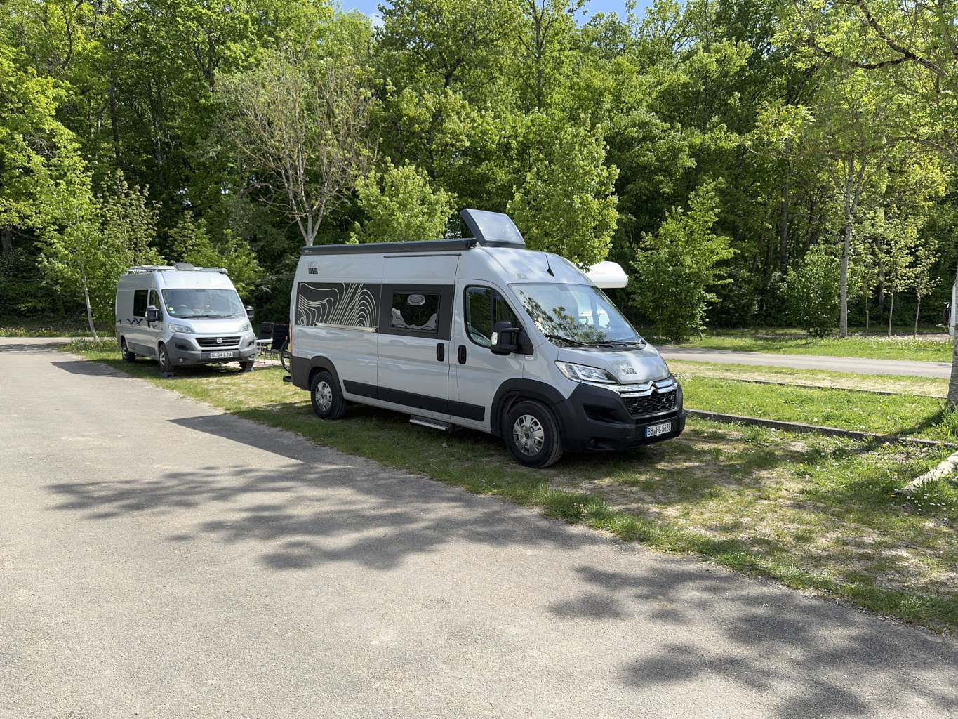 Der zweite Abschnitt der Rückreise führt mich nach Giffaumont-Champaubert. Die Fahrstrecke von 305km führte zwar über Paris, ließ sich aber ganz gut bewältigen. Für die letzte Nacht des Trips habe ich mir einen Stellplatz inmitten der Natur, nah eines Badesees, ausgesucht. Es sind noch französische Osterferien und es ist Sonntag; – der Stellplatz ist zu 90% belegt, aber die Stimmung ist gut.