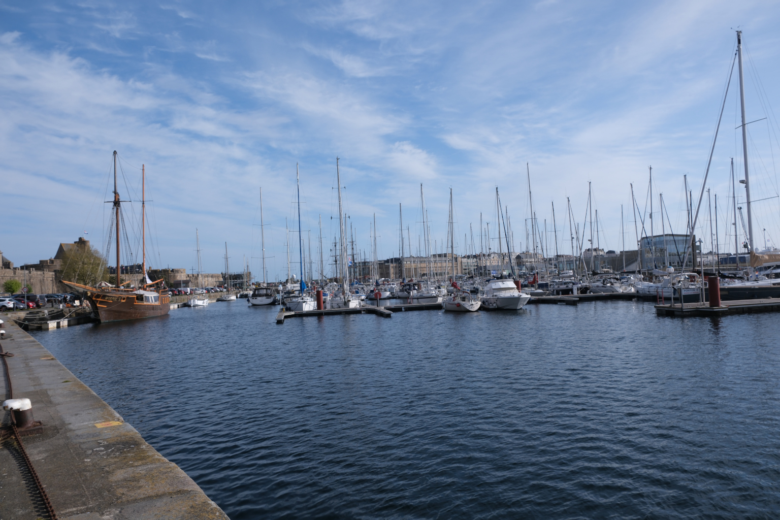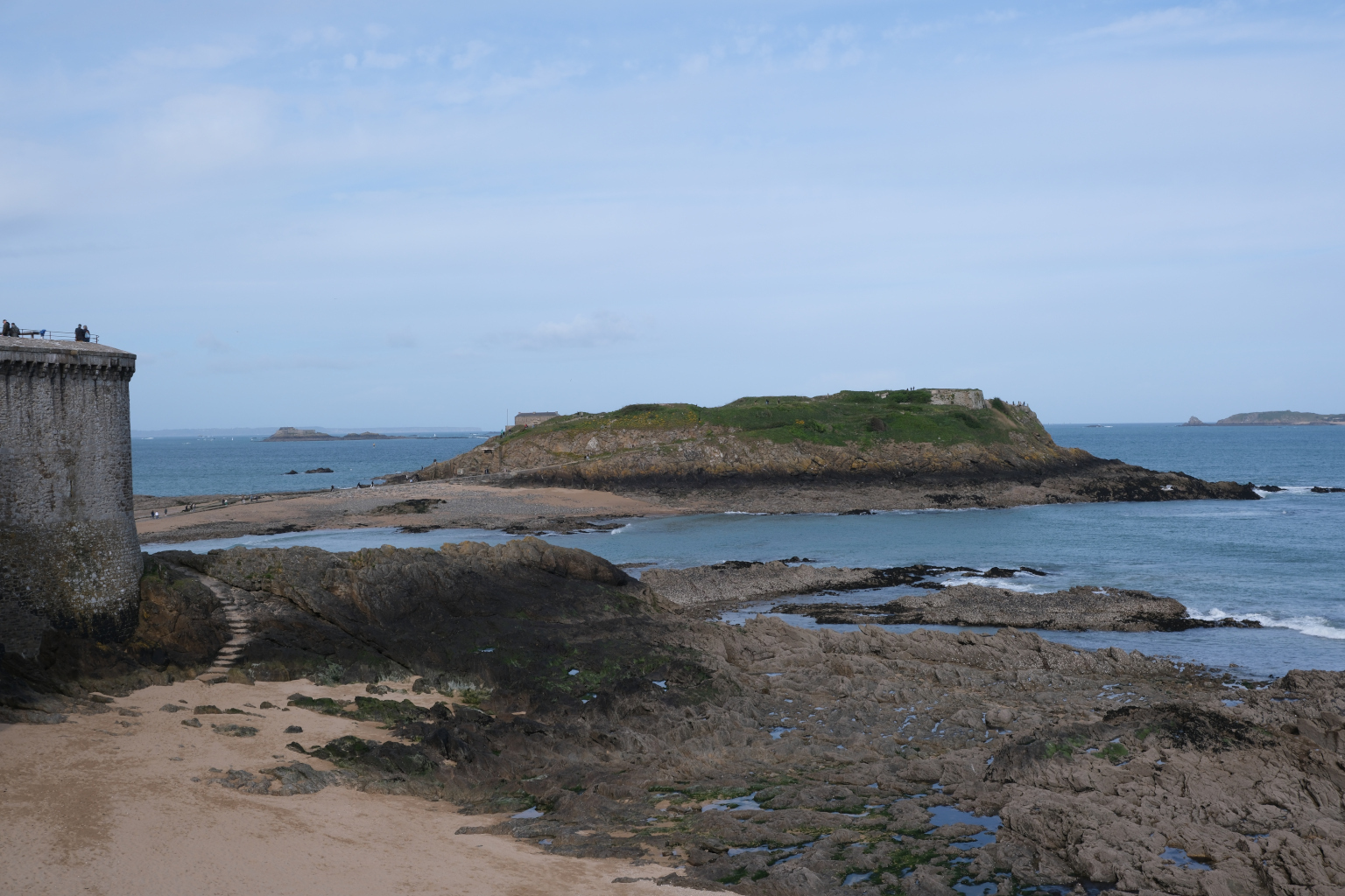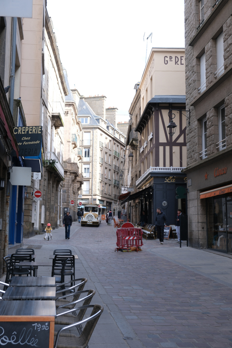 Nach einer kalten Nacht und einer Vormittagstemperatur von 8 Grad mache ich mich mit dem Rad auf den Weg nach Saint-Malo Zentrum. Nach den ersten Meters bereute ich schon, nicht den Bus genommen zu haben. Aus ihrer Zeit als Piraten Hochburg hat sich Saint-Malo eine gut ausgebaute Festungsanlage erhalten. Im Innern der vollständig vorhandenen Stadtmauer befindet sich die historische Altstadt, Intra-Muros. In einem Abschnitt der Stadtmauer ist der „Micro Zoo“ untergebracht. Entlang einer linearen Strecke werden in weit über 100 Terrarien und Aquarien Meeresbewohner aber auch Amphibien und Reptilien gehalten und können betrachtet und zugehörige Informationen gelesen werden. Neben der „Neustadt“ schließen sich Yacht- wie auch Fährhafen an. Der Fährbetrieb bedient vorwiegend die Strecken zu den britischen Inseln Guernsey und Jersey, die ja fast nur einen Steinwurf von der bretonischen Küste entfernt sind.