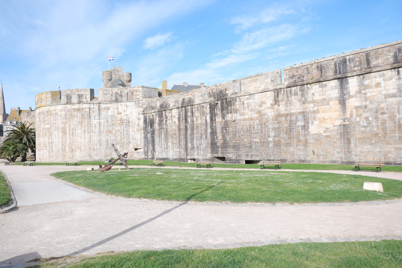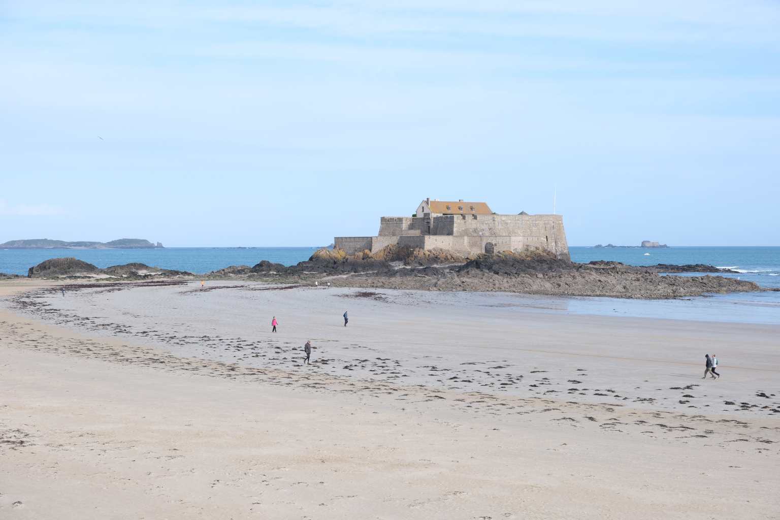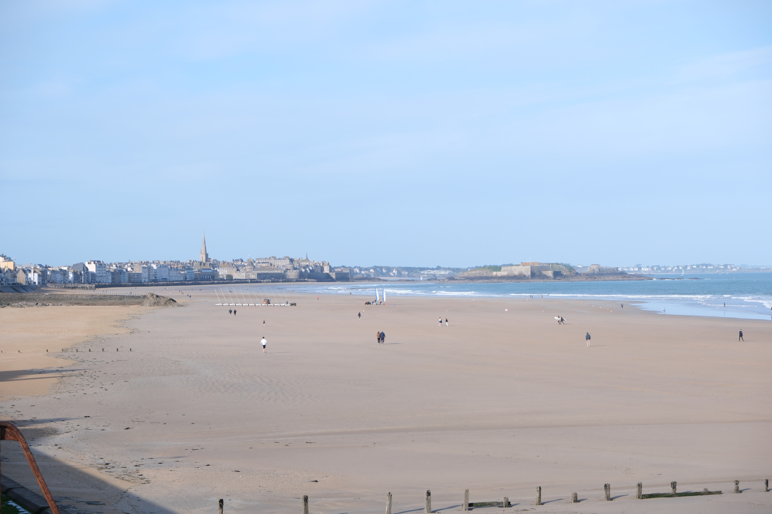 Nach einer kalten Nacht und einer Vormittagstemperatur von 8 Grad mache ich mich mit dem Rad auf den Weg nach Saint-Malo Zentrum. Nach den ersten Meters bereute ich schon, nicht den Bus genommen zu haben. Aus ihrer Zeit als Piraten Hochburg hat sich Saint-Malo eine gut ausgebaute Festungsanlage erhalten. Im Innern der vollständig vorhandenen Stadtmauer befindet sich die historische Altstadt, Intra-Muros. In einem Abschnitt der Stadtmauer ist der „Micro Zoo“ untergebracht. Entlang einer linearen Strecke werden in weit über 100 Terrarien und Aquarien Meeresbewohner aber auch Amphibien und Reptilien gehalten und können betrachtet und zugehörige Informationen gelesen werden. Neben der „Neustadt“ schließen sich Yacht- wie auch Fährhafen an. Der Fährbetrieb bedient vorwiegend die Strecken zu den britischen Inseln Guernsey und Jersey, die ja fast nur einen Steinwurf von der bretonischen Küste entfernt sind.