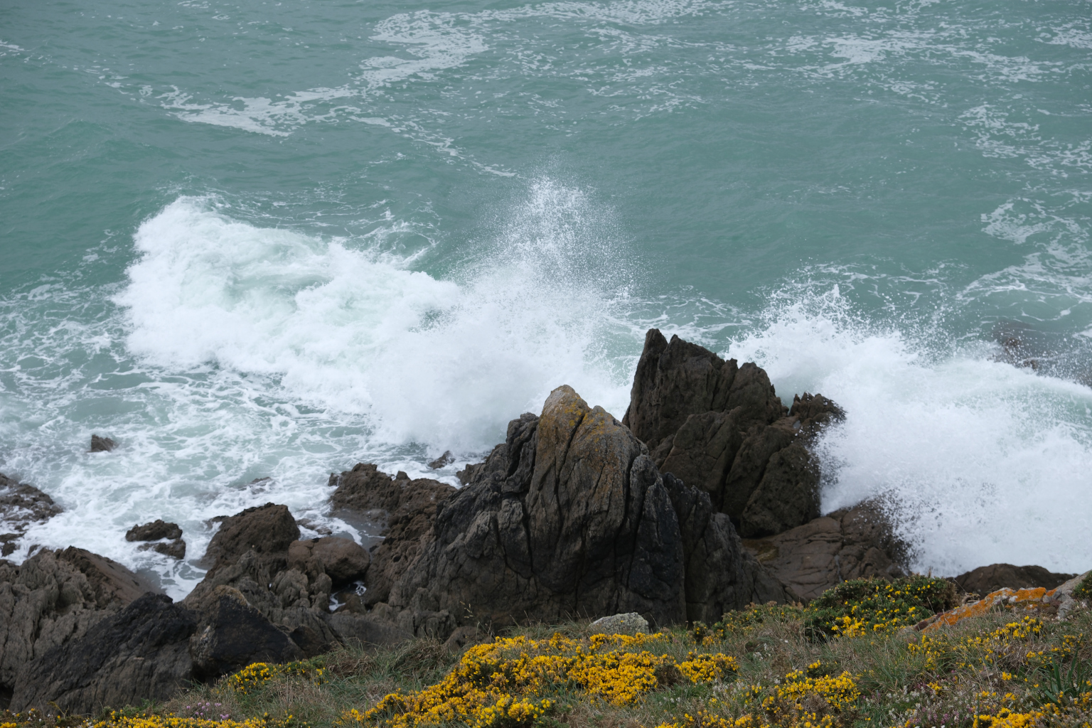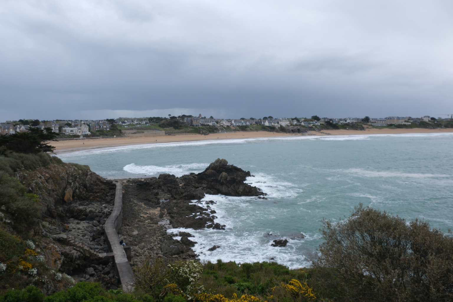 Am Nachmittag besuche ich, ebenfalls mit dem Rad, eine von Saint-Malo’s Steilküsten und werde von einer massiven Regenfront überrollt. Mir blieb nur die „Flucht“.